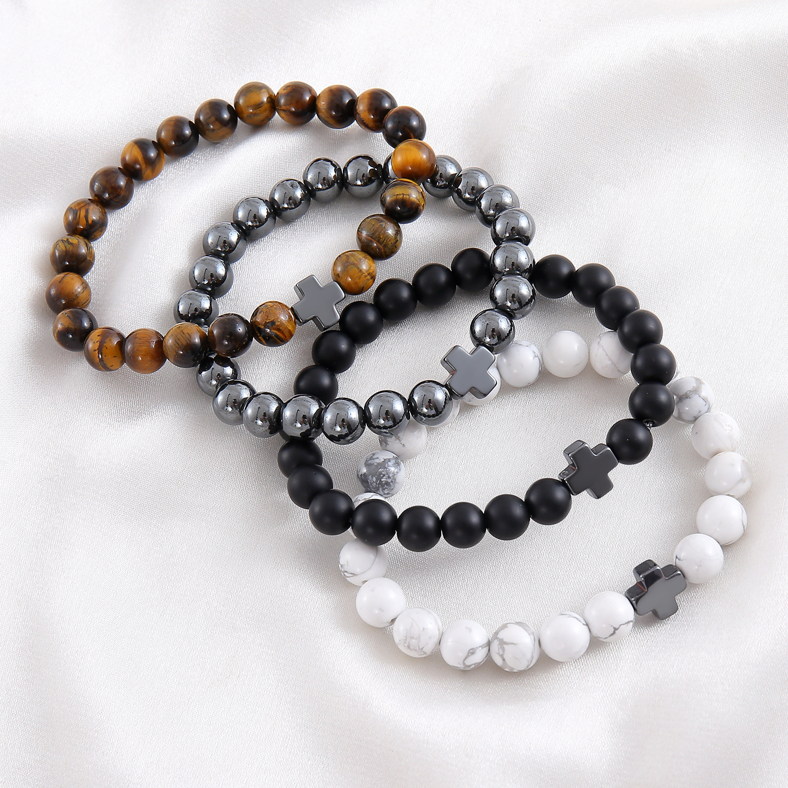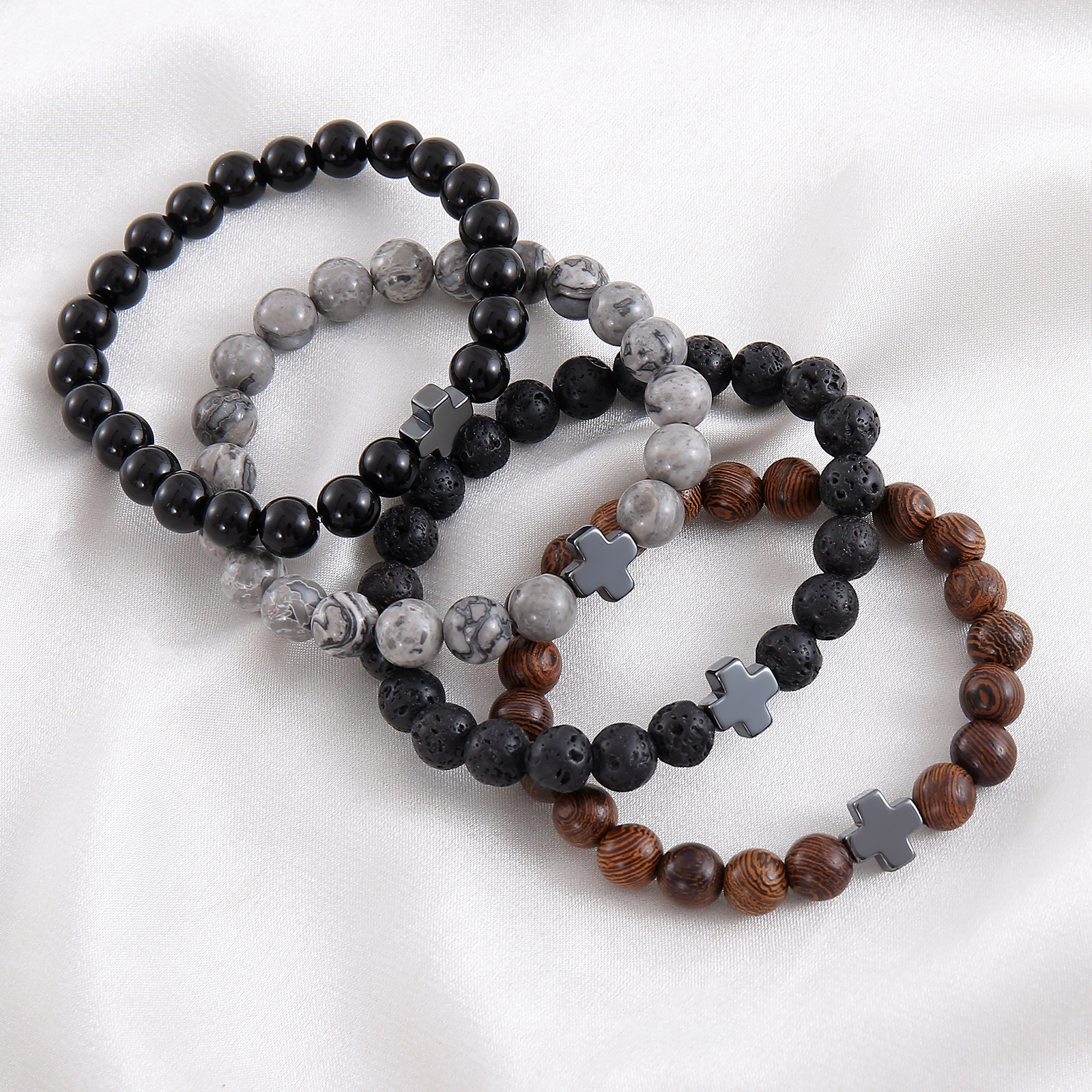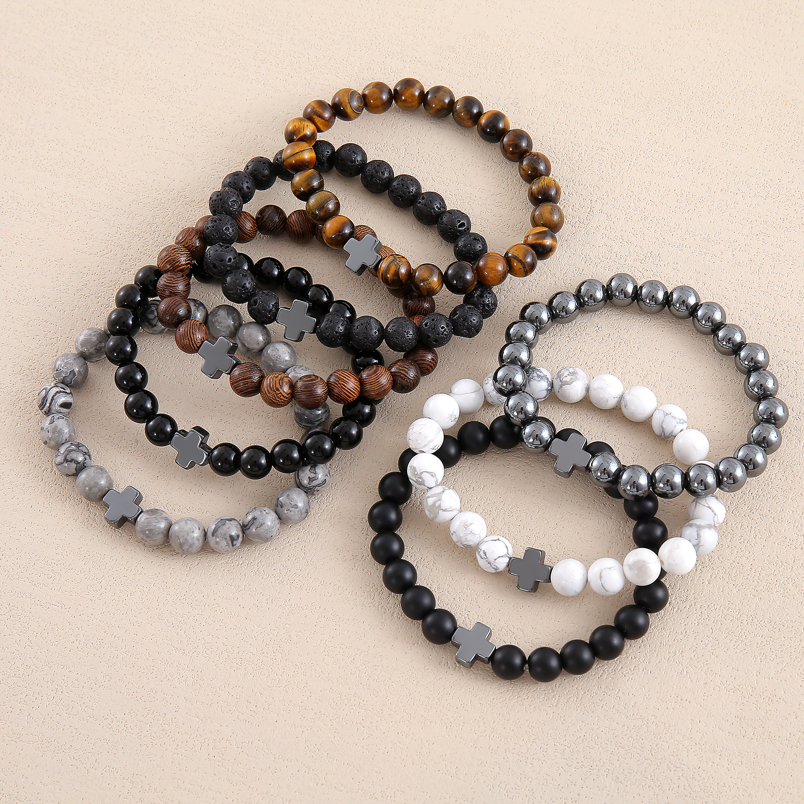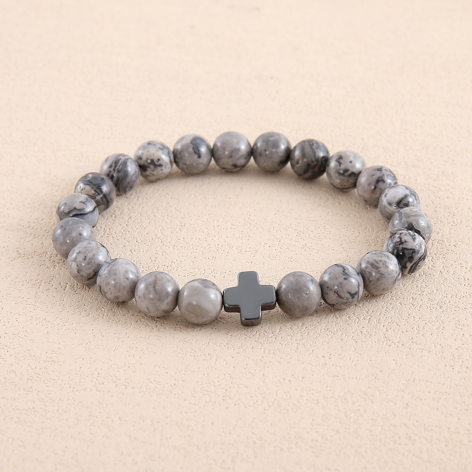 Add a meaningful touch to your style with our Men’s Natural Stone Cross Beaded Bracelet. Made from high-quality natural stone beads, this bracelet features a unique cross design and is available in a variety of colors including grey, white, and wood grain. The casual and versatile style makes it ideal for daily wear, parties, or as a thoughtful gift. Lightweight and comfortable, it’s perfect for stacking with other bracelets or wearing on its own for a subtle statement. Elevate your look with this modern accessory designed for today’s man. 8mm.