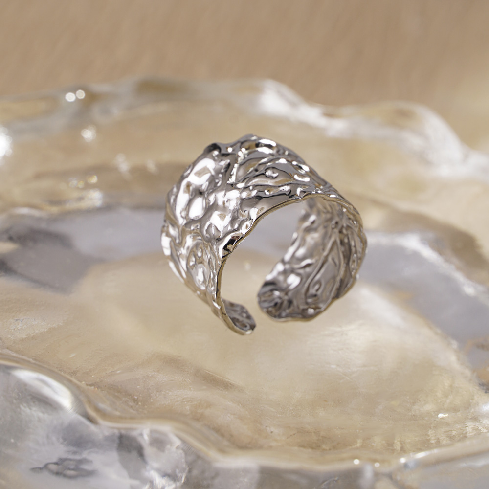 Turn heads with this modern shiny textured open ring, crafted from high-quality 304 stainless steel and finished in your choice of polished gold or silver. The bold, sculptural texture and wide band give this ring a striking, contemporary look—perfect for masquerade parties, daily wear, or adding edge to your favorite outfits. Waterproof, tarnish-resistant, and hypoallergenic, it’s adjustable for a comfortable fit and designed for all-day confidence. Wear it solo or stack it for extra impact.
