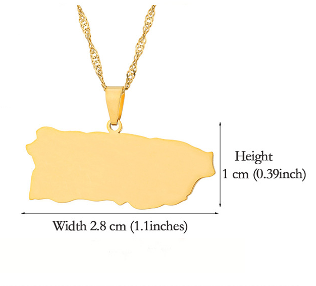 Puerto Rico Map Pendant Necklace – Gold or Silver Stainless Steel
