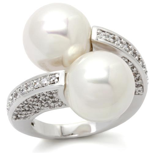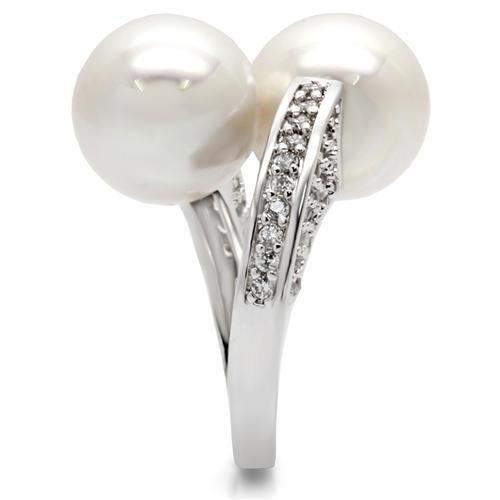 Classic pearls, but make it modern. This rhodium-finish brass ring features a bold double pearl design with AAA grade clear CZ accents for extra shine. A polished statement piece that looks expensive without trying too hard—perfect for date nights, events, or gifting.