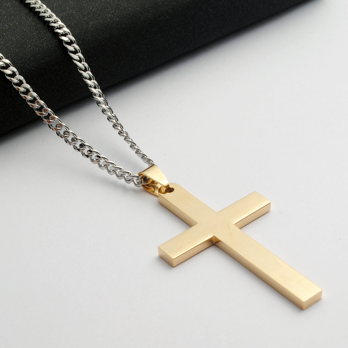 | Color | Silver chain with silver cross pendant, Silver chain with black cross pendant, Silver chain with gold cross pendant, Silver-Cross-Pendant, Gold-Cross-Pendant, Black-Cross-Pendant |