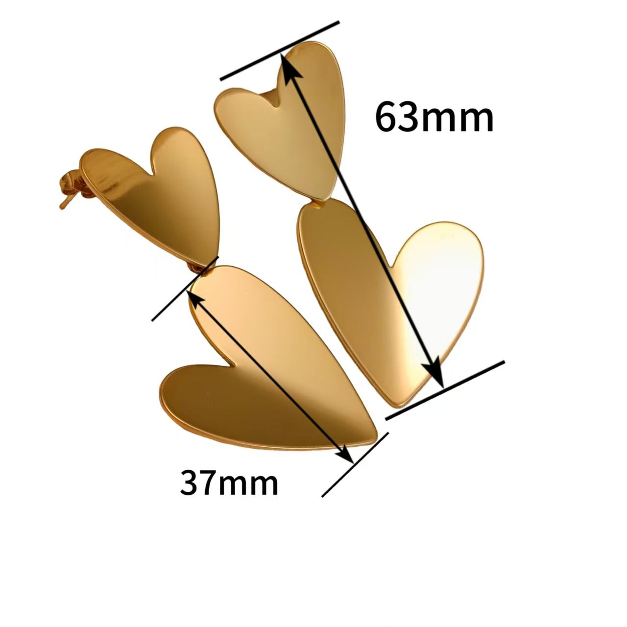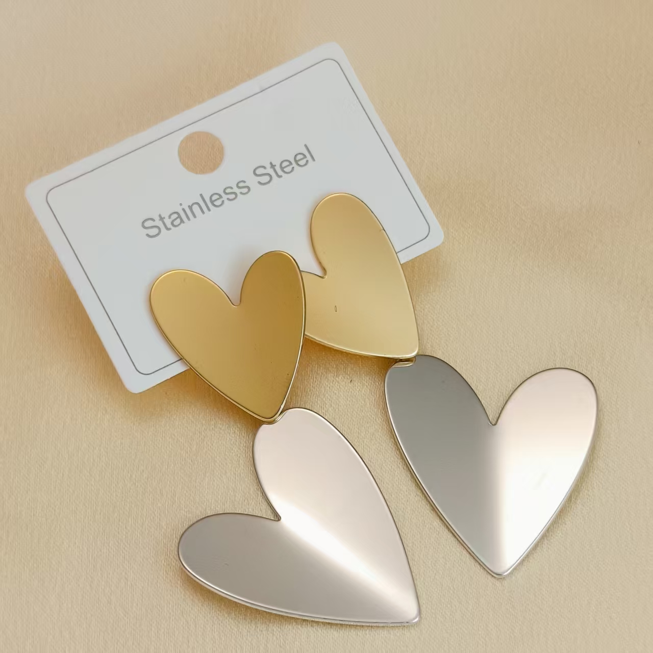 Show your playful side with these stylish heart-shaped stud earrings, available in both gold and gold-silver finishes. Crafted from premium 304 stainless steel and plated with real 18K gold or polished to a high-shine silver, these earrings offer a modern twist on a classic heart design. Lightweight and comfortable for all-day wear, they’re perfect for adding a little love to your everyday outfits or gifting to someone special. Durable, hypoallergenic, and resistant to tarnish, these earrings are a must-have for any jewelry lover who enjoys mixing elegance with fun.