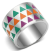 Add a pop of color to your everyday look. This high‑polished stainless steel band ring features a bold multi‑color triangle epoxy design that stands out without feeling heavy. Durable, shiny, and easy to style—perfect for daily wear or a night out.
