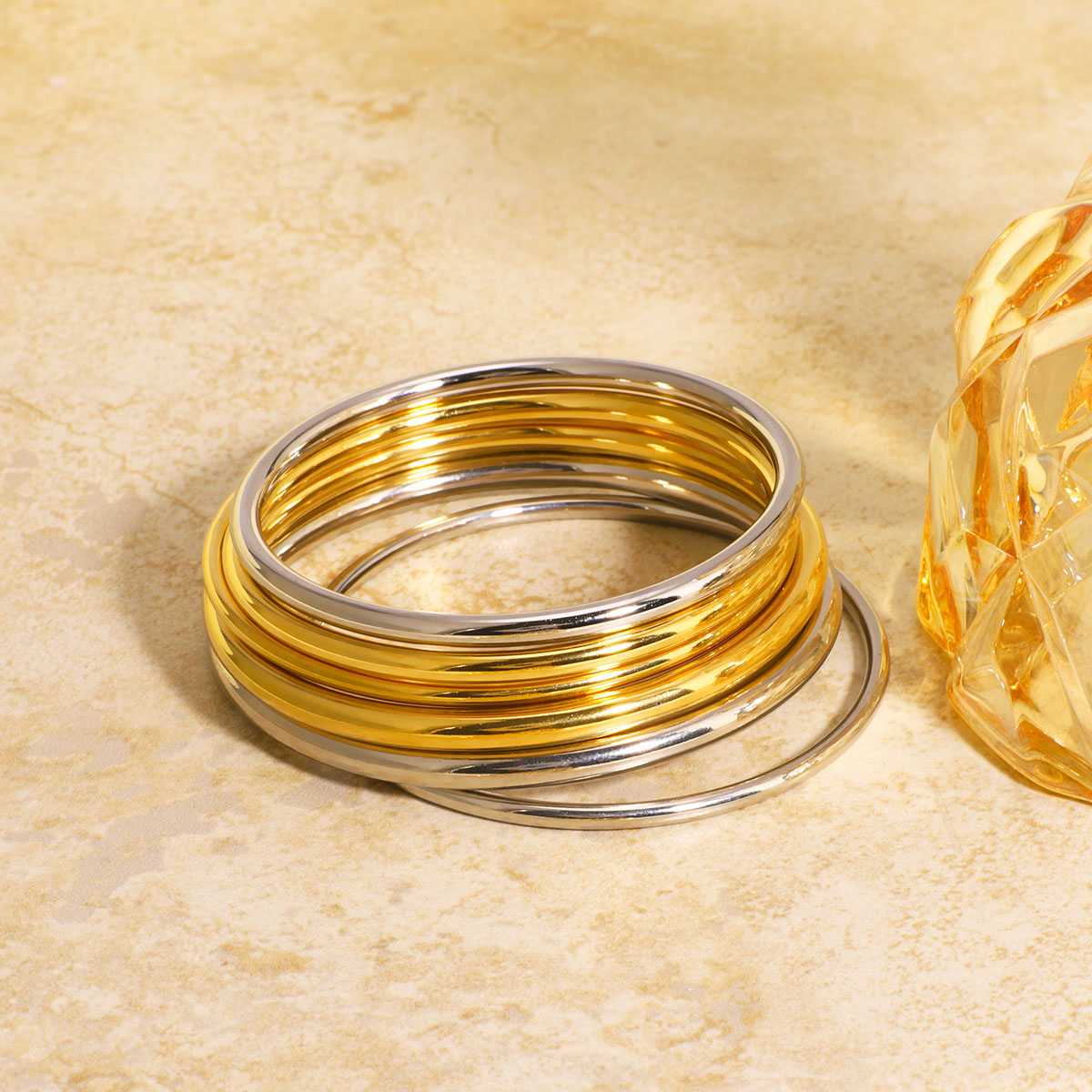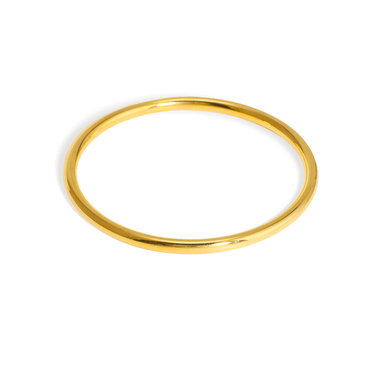 Elevate your style with this timeless round bangle, designed for women who appreciate both elegance and simplicity. Made from durable 304 stainless steel and finished with real 18K gold plating using a PVD coating, this bangle is waterproof and resistant to tarnishing—ideal for daily wear, holidays, or a day at the beach. Its classic circle design makes it easy to stack with other bracelets or wear alone for a chic, minimalist look. Lightweight and comfortable, it’s a versatile accessory that adds a touch of glam to any outfit.